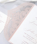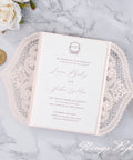 ★★ Blush Pink Laser Cut Pocket Invitation Cards