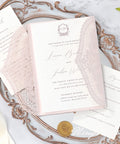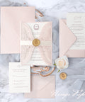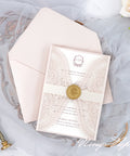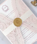 NingsPaper Blush Pink Laser Cut Invitation Cards with Ivory Belly Band and Wax Seal