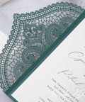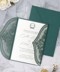 ★★ Emerald Green Laser Cut Pocket Invitation Cards
