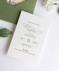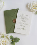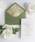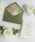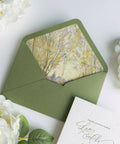 NingsPaper Olive Green Liner Envelopes with Letterpress Floral Wedding Invitation Card