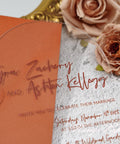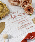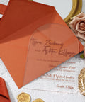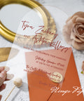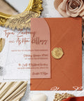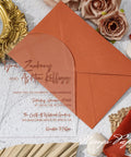 1mm/0.04" Unique Shape Clear Arch Acrylic Wedding Invitation Cards with Burnt Orange Envelope