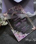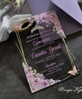 1mm/0.04" Lilac Acrylic Quinceanera Invitation Cards with Envelopes