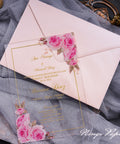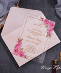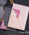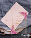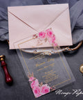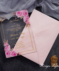 1mm/0.04" Pink Clear Acrylic Quinceanera Invitation Cards with Envelopes