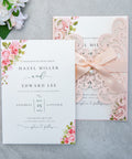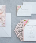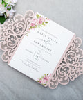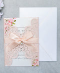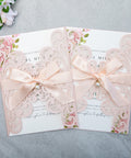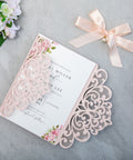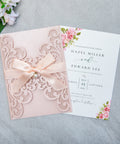 ★★ Blush Pink Laser Cut Pocket Invitation Cards