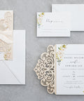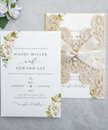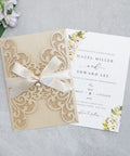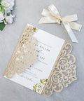 ★★ Champagne Laser Cut Pocket Invitation Cards