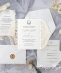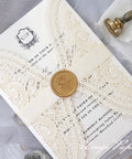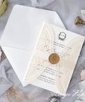 NingsPaper Ivory Laser Cut Invitation Cards with Ivory Belly Band and Wax Seal