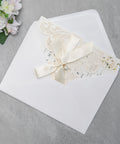 NingsPaper Ivory Laser Cut Invitation Cards with Ribbons and Rhinestone Pearls
