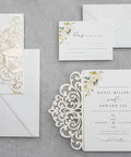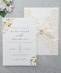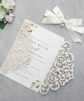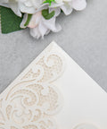 ★★ Ivory Laser Cut Pocket Invitation Cards