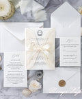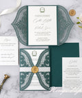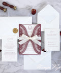 Sample Order Multi-color Laser Cut Invitation Cards with Ivory Belly Band and Wax Seal