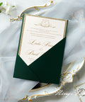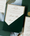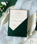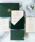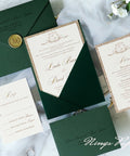 ★★ Emerald Velvet Panel Pocket Wedding Invitations★★