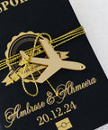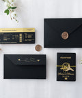 NingsPaper Black Wedding Passport Invite in Pocket & Mirror Tag Passport Invitation Suite