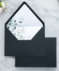 NingsPaper 50 Pieces Black Floral Liner Euro Flap Envelopes for Wedding Invitation Card