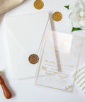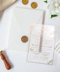 - 1mm/0.04" Foil Print in Gold Acrylic Invitation Cards
