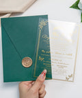 NingsPaper 1mm/0.04'' Foil Print in Gold Clear Acrylic Quinceanera Invitation Cards and Emerald Green Envelopes