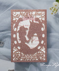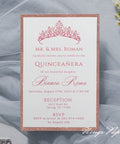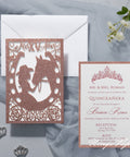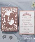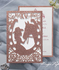 Rose Gold Glitter Laser Cut Pocket Quinceañera Invitation Cards with Envelopes